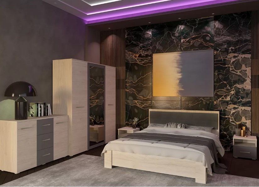 Бари Комод 2д3ш (гикори рокфорд светлый / графит серый)