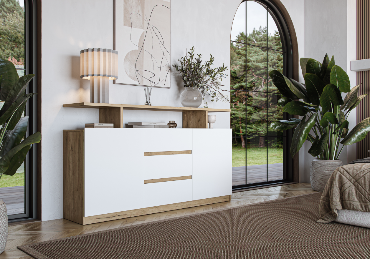 Комод Бостон 1600х900х350 (Дуб Крафт Золотой / Белый)