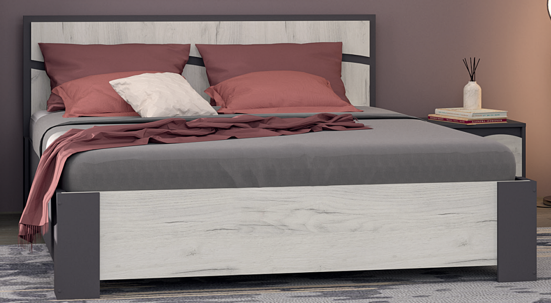 Женева Кровать 1600 (графит серый/дуб крафт белый)